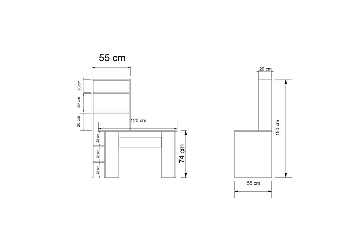 - Comprend un bureau de couleur chêne avec bibliothèque intégrée en charbon de bois.