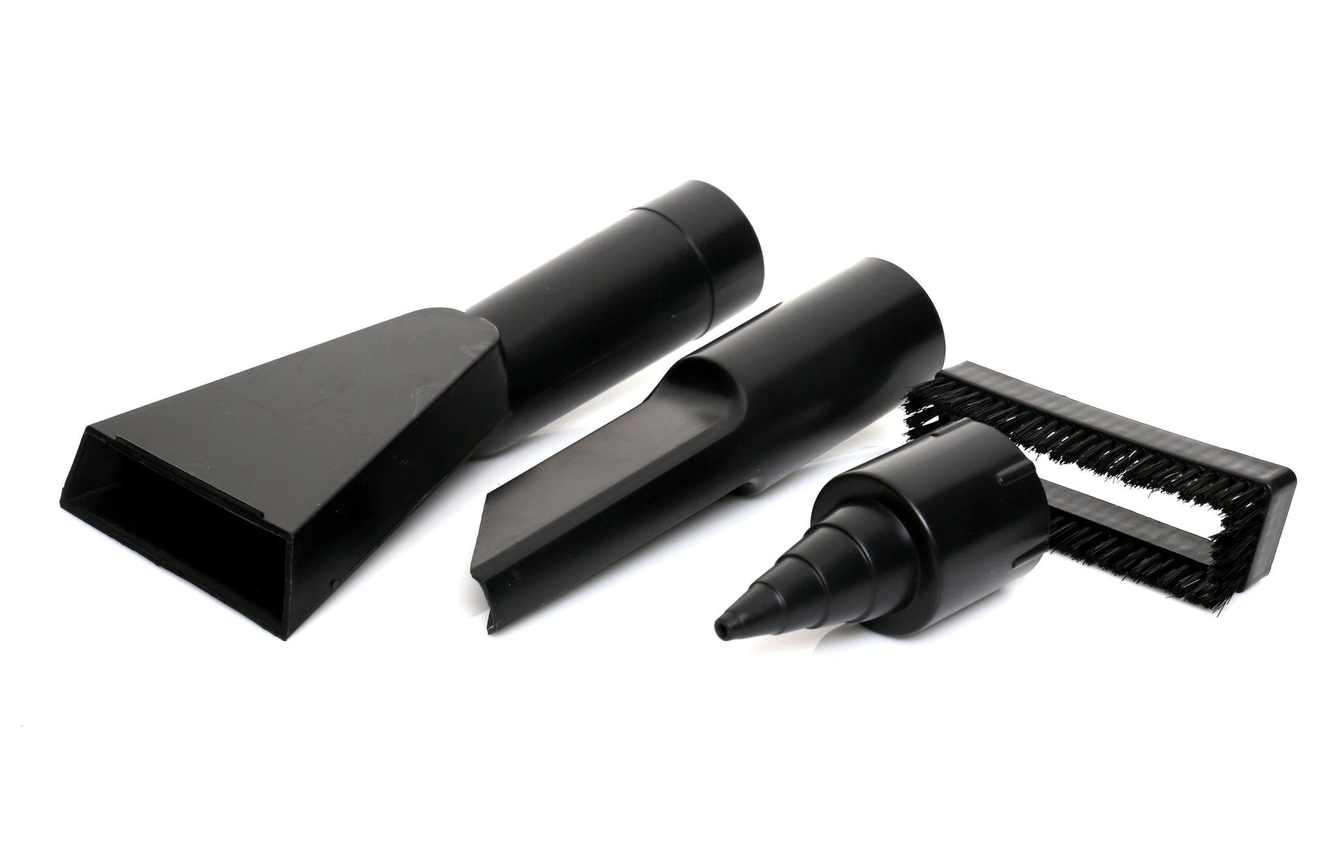 une buse d'aspiration étroite et une large, un jeu de brosses de nettoyage et un adaptateur de gonflage, permettant ainsi une utilisation polyvalente.