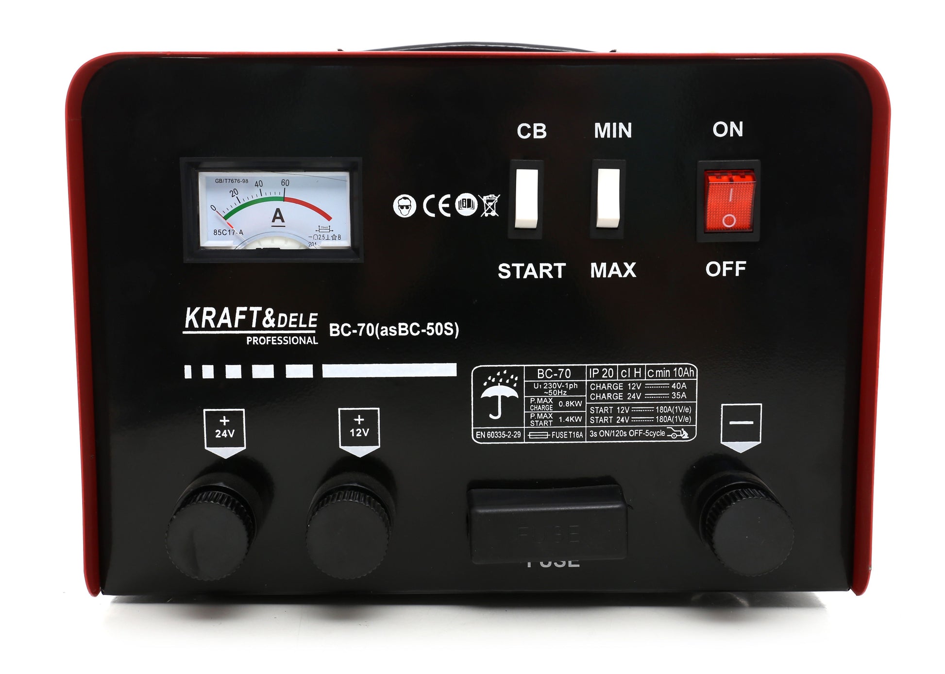 Paramètres : • Type : Redresseur avec fonction de démarrage • Fabricant : KRAFT&DELE • Alimentation : 230 V~50 Hz • Tension de charge : 12 V/24 V • Courant de charge nominal : 45 A • Courant de démarrage nominal : 200 A • Puissance d'entrée maximale au démarrage : 6,8 kW • Capacité de batterie dédiée : 20 - 500 Ah • Fusible : 2 x 40 A • Poids : environ 12 kg |