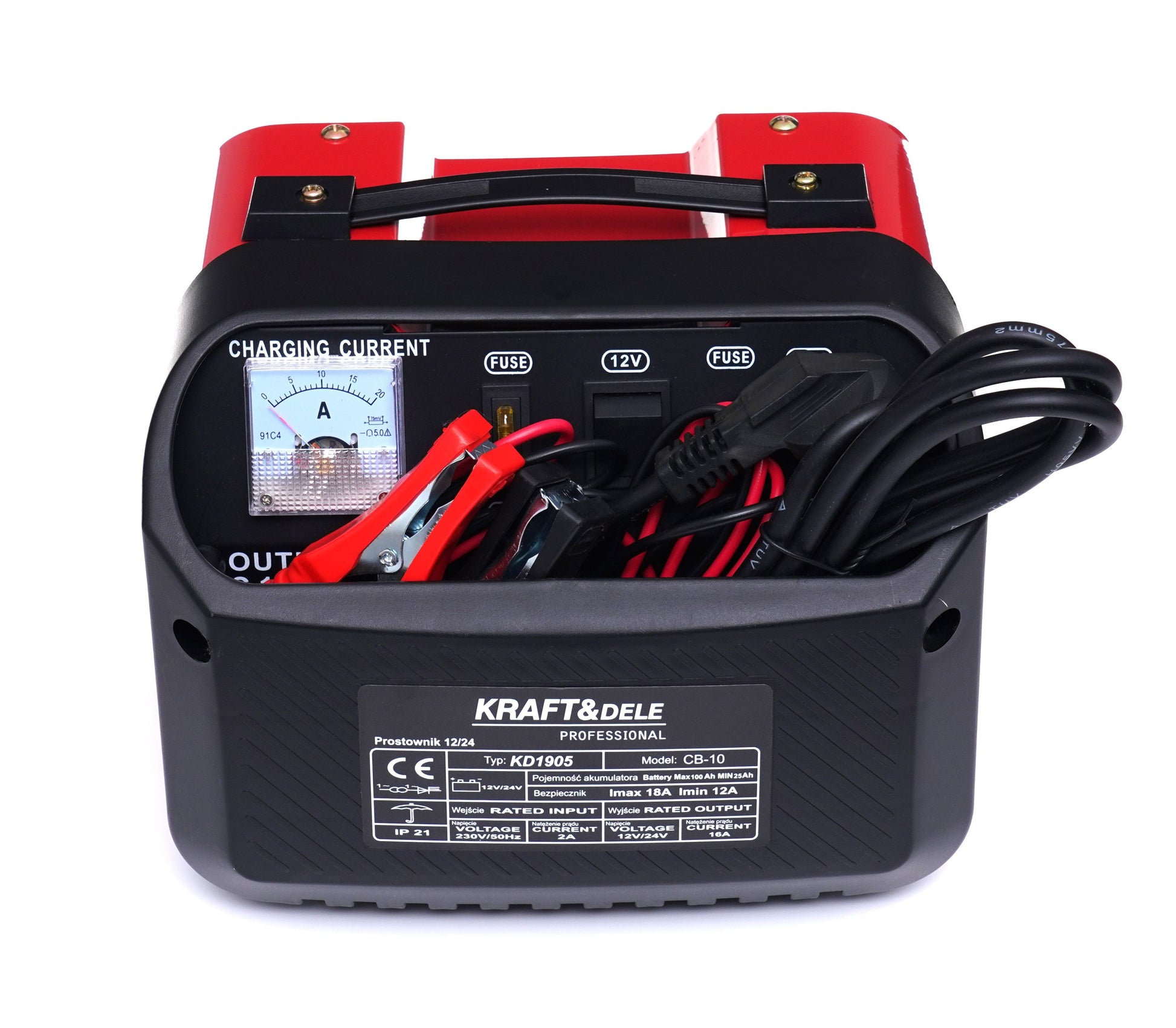 Le chargeur de batterie rapide est un appareil fiable pour charger des batteries de 12 V/24 V. Il est équipé d'un ampèremètre et de fusibles pour le protéger des dommages. Il peut charger des batteries de capacités allant de 20 Ah à 60 Ah. Fabriqué avec des matériaux de haute qualité, le chargeur est doté de fusibles à lame et de fusibles pour une sécurité de fonctionnement optimale. Sa poignée facilite son transport. Sa conception simple et robuste garantit fiabilité et longévité.