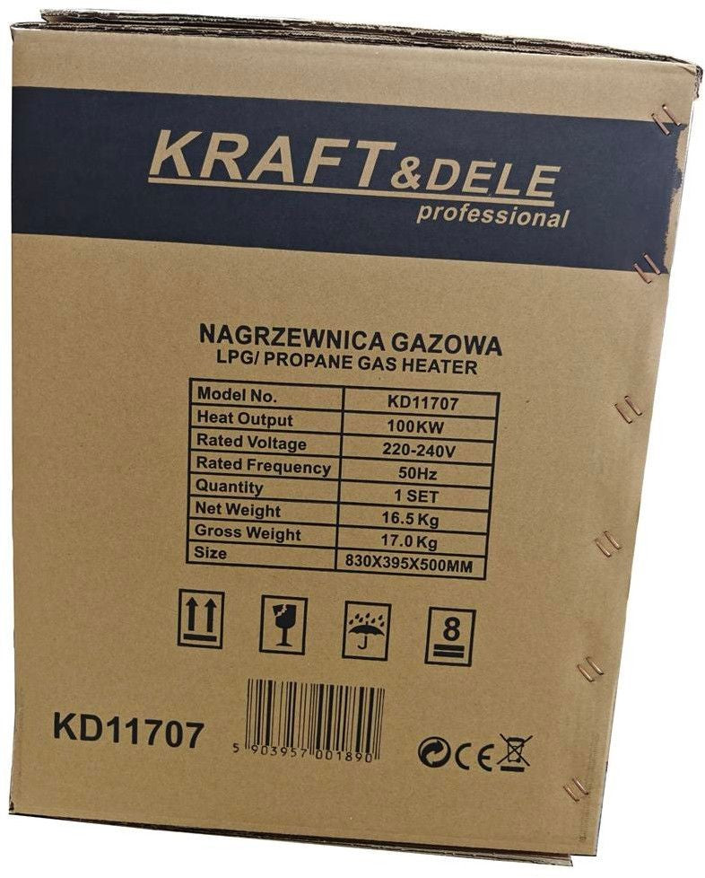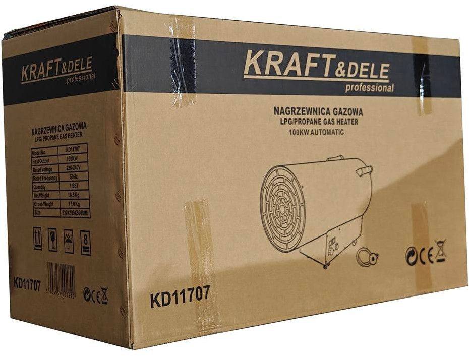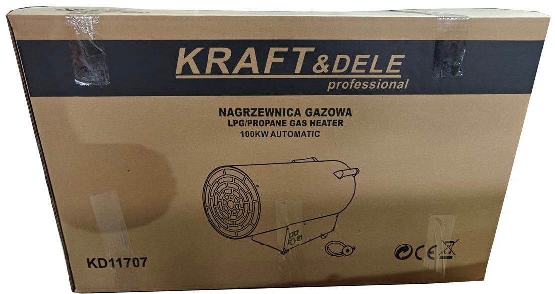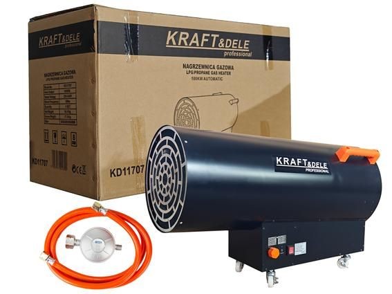 Ce chauffage au gaz propane-butane (GPL) de 100 kW est équipé d'un thermostat intégré avec contrôle de température. Il fonctionne automatiquement en fonction de la température réglée.