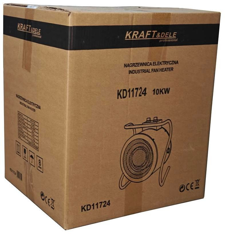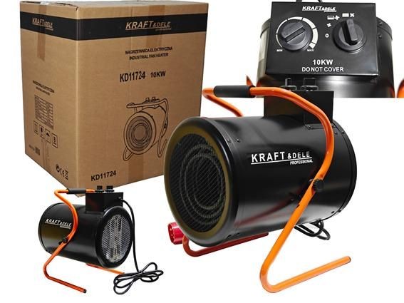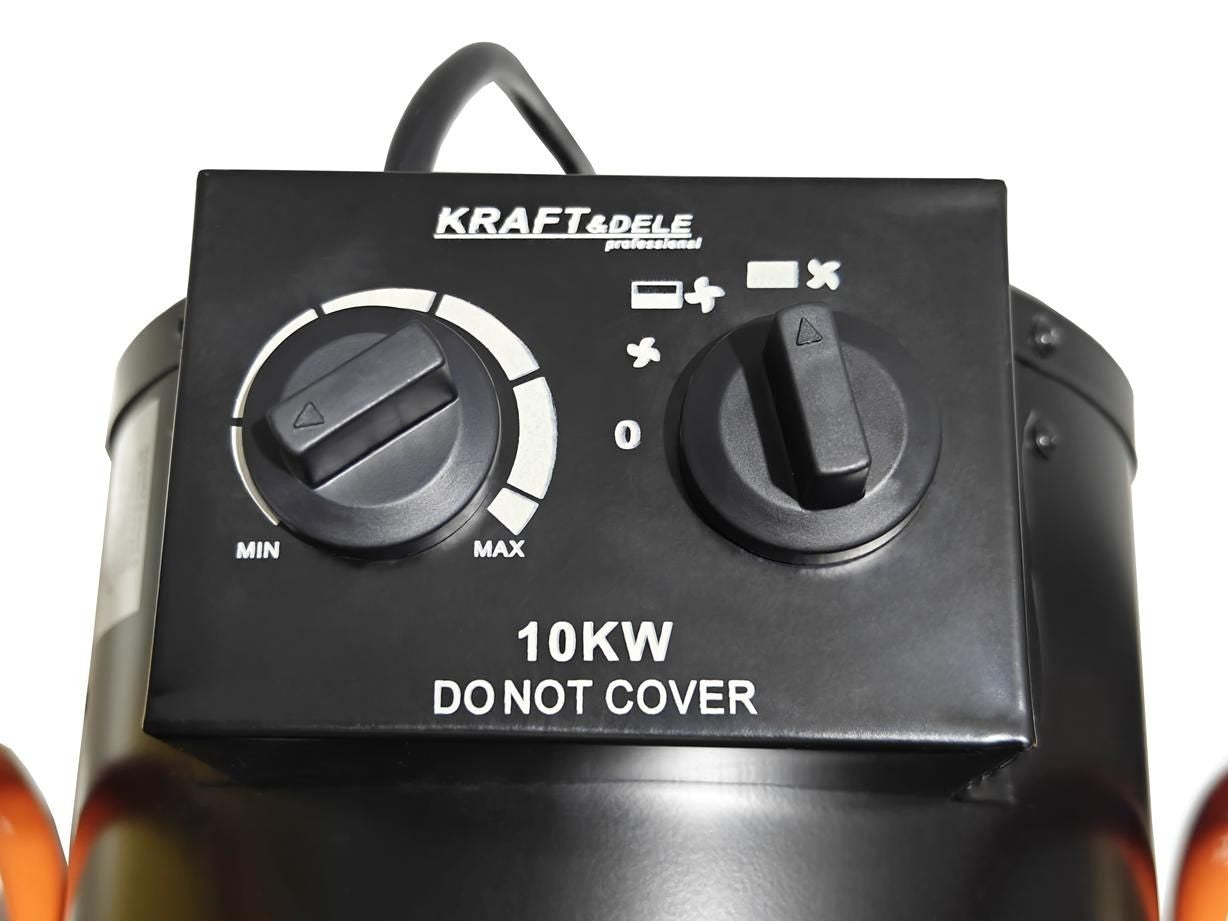 Radiateur électrique  d'une puissance de 10 kW. Il est équipé d'un thermostat intégré.
