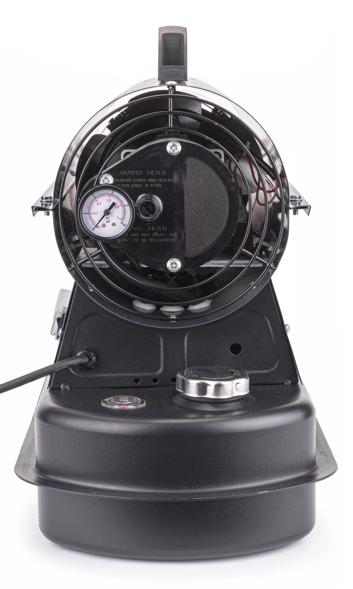 Le ventilateur à cinq pales intégré offre un débit d'air élevé de 550 m³/h. Le moteur haut de gamme, l'allumage piézo-électrique intégré et la protection contre la surchauffe coupant l'alimentation en combustible garantissent un fonctionnement efficace et sûr.