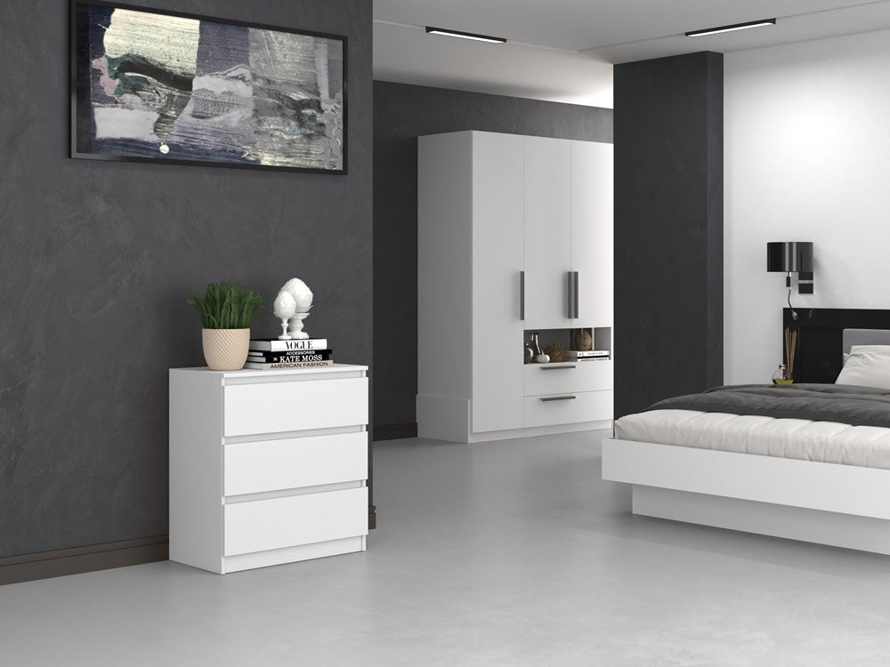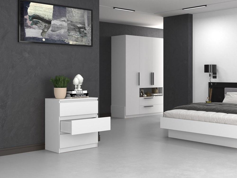 Commode 3 tiroirs 75x40x70 cm blanche