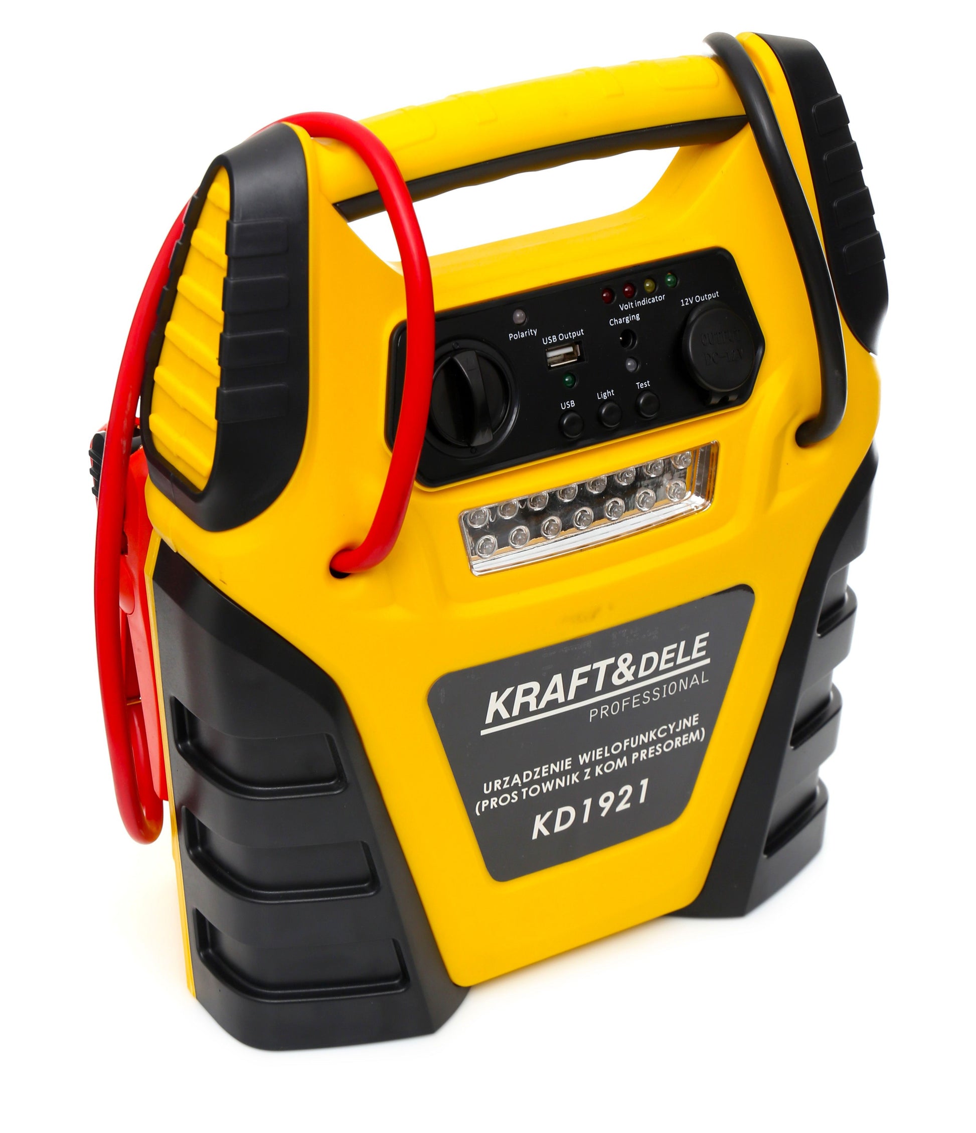 Un appareil multifonction, utile dans tout garage ou voiture. Il peut démarrer votre voiture, recharger votre téléphone, éclairer la route et gonfler vos pneus. Il est équipé de câbles de démarrage intégrés de 65 cm et d'un flexible de compresseur de 55 cm.