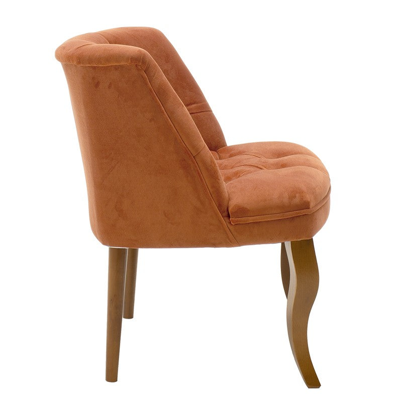 Les caractéristiques clés du Fauteuil Loreta Orange velours incluent : - Matière : Bois et velours de haute qualité pour une durabilité et un confort exceptionnels - Dimensions : Longueur : 59cm - Profondeur : 64cm - Hauteur : 73cm - Profondeur d'assise : 48cm - Hauteur d'assise : 45cm - Design classique sans accoudoirs avec des détails matelassés pour une touche d'élégance et de sophistication