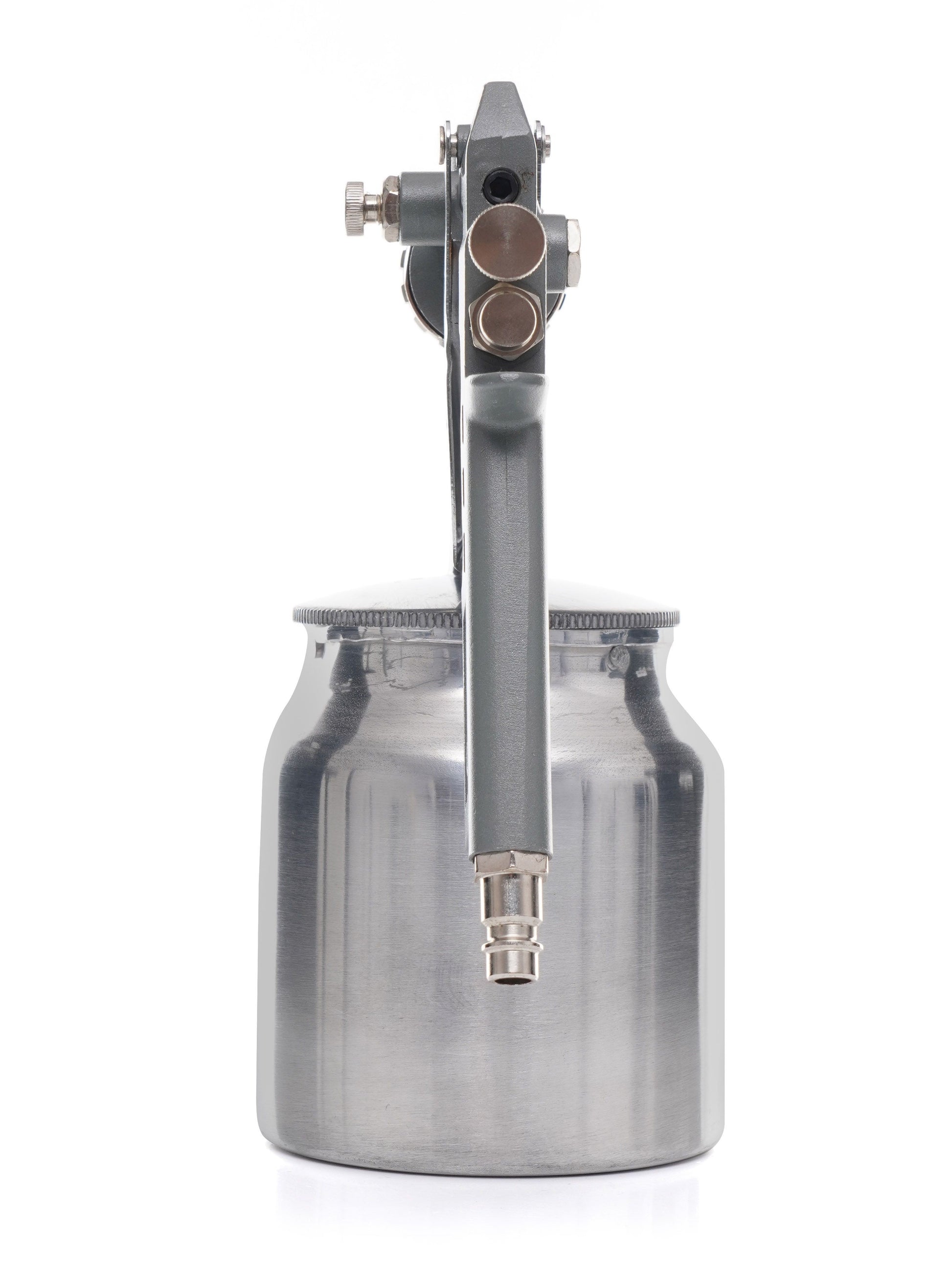 Paramètres : • • • Diamètre de la buse : 1,8 mm • Largeur du jet : 160 - 230 mm • Pression de travail : 3,0 - 5,0 bar • Consommation d'air : 325 l/min • Réservoir : 750 ml • Poids : 1,3 kg |
