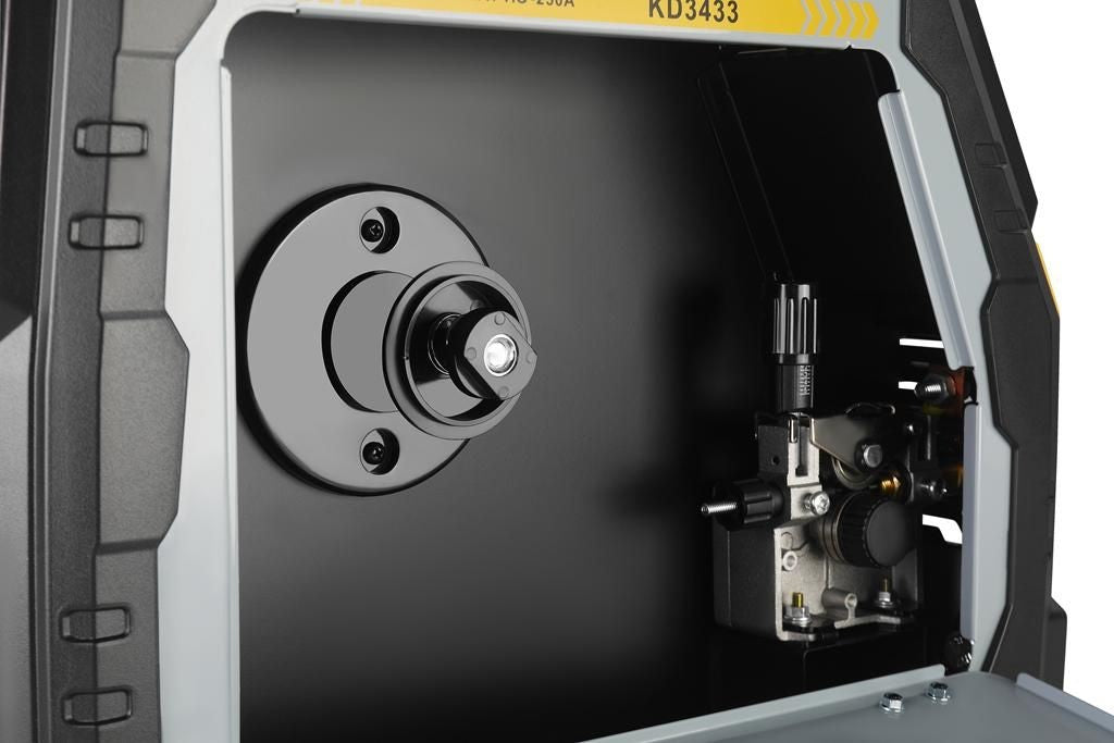 Le confort d'utilisation est amélioré par les fonctions suivantes : burnback (régulation du burnback du fil), SPOT (soudage par points avec régulation du temps), contrôle du mode de fonctionnement (2T, 4T, SPT) et un dévidoir de fil précis à 2 rouleaux.